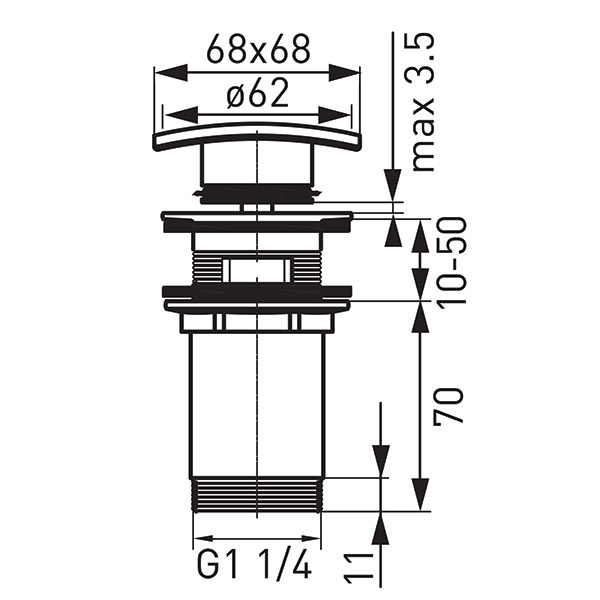 Ferro Click-clack mosdó leeresztőszelep, szögletes, fekete, túlfolyós mosdóhoz, S284-BL-B