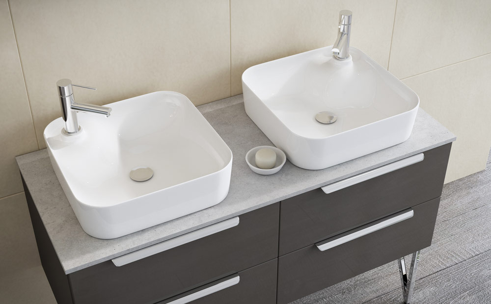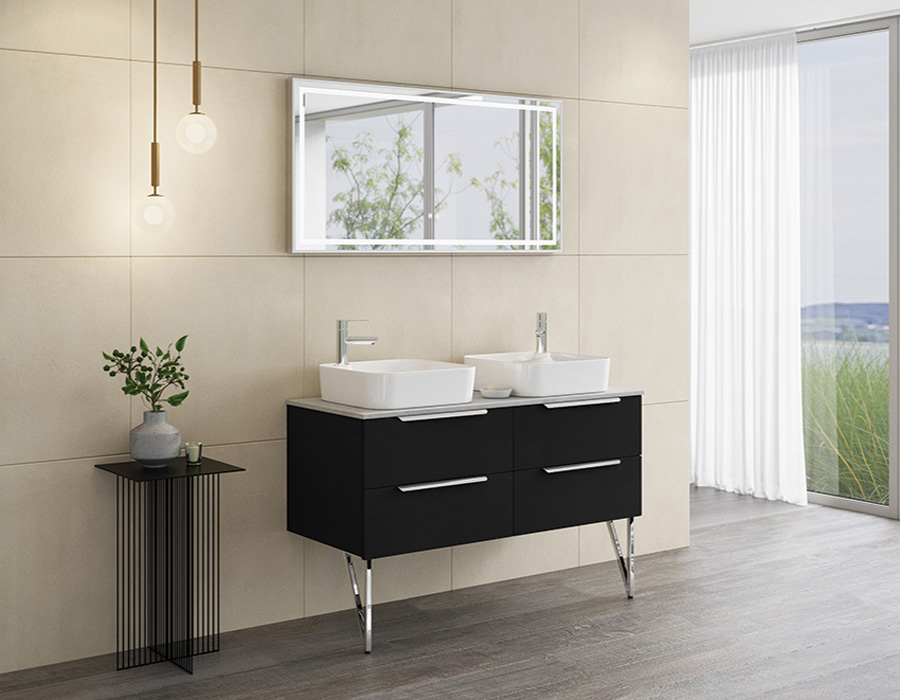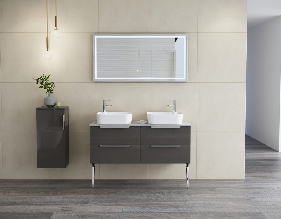 Tboss Nola 140 4F 2M alsó fürdőszobabútor 4 fiókkal, 2 kerámia mosdóval, 3 féle fogantyúval és 19 színben választható