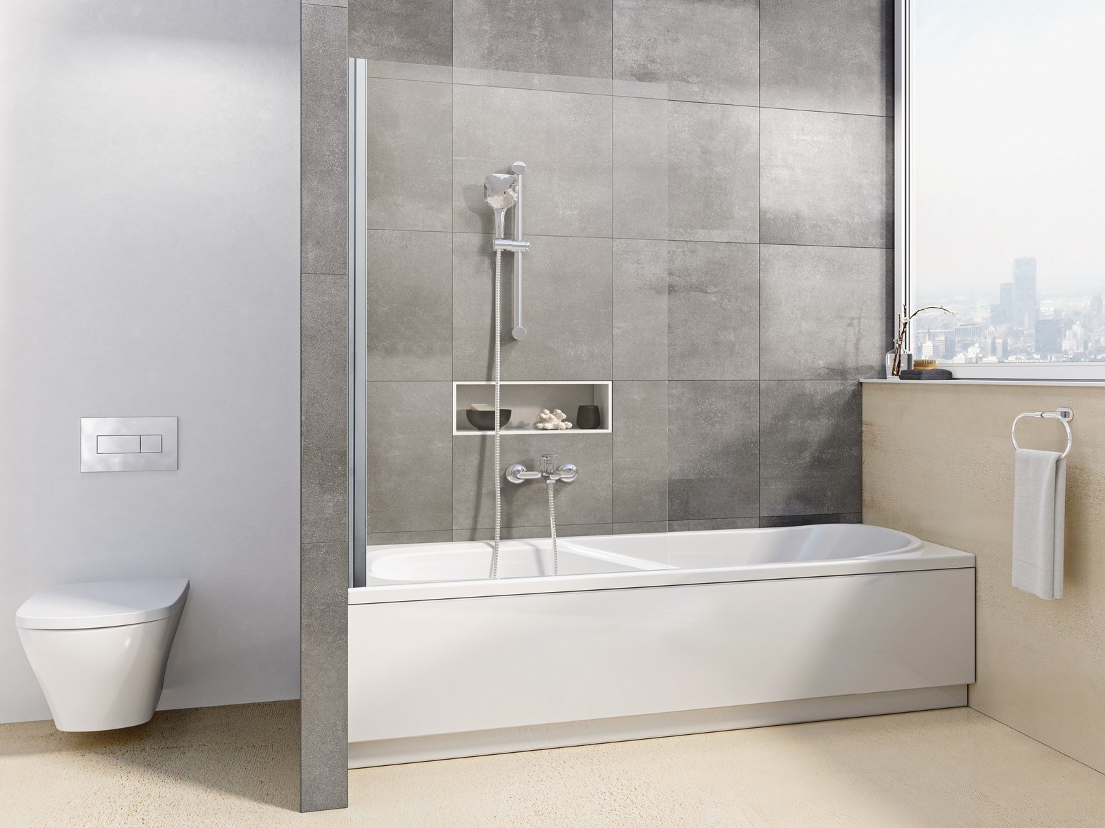 Ravak PVS1-80 fix, keret nélküli kádparaván, fényes króm profil + átlátszó üveg Ravak PVS1 egyrészes kádparaván szatén keret + átlátszó üveg
