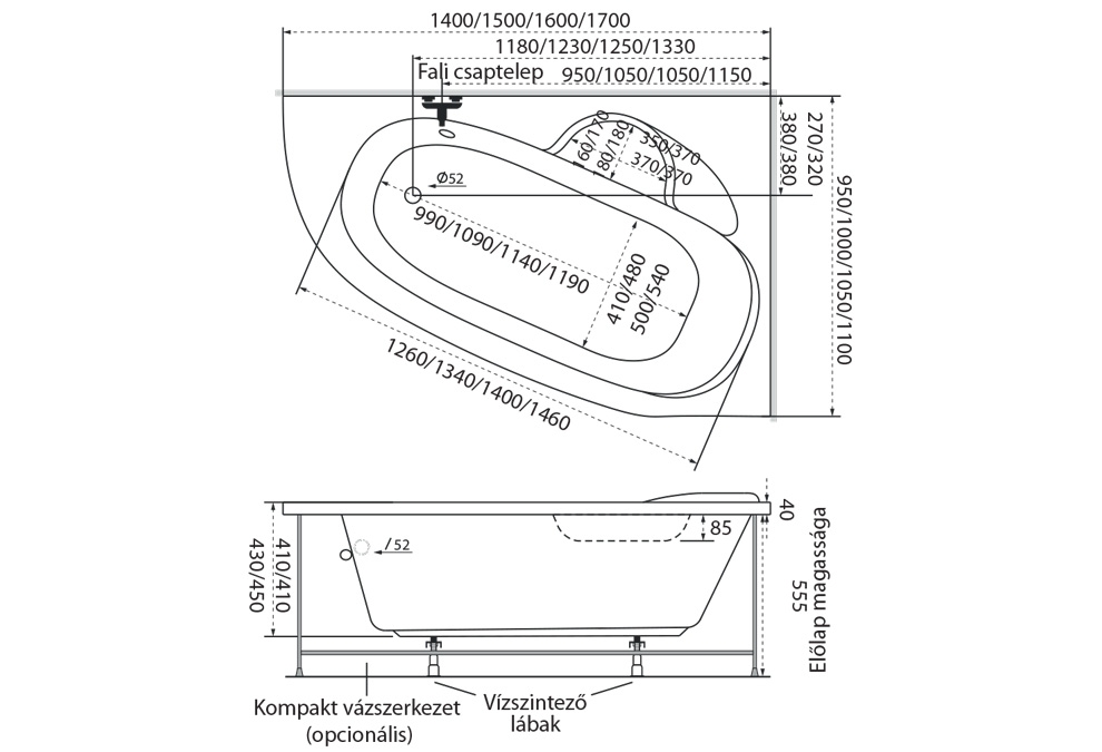 - Az ár a kádtestet tartalmazza, amely beépíthető, burkolható.