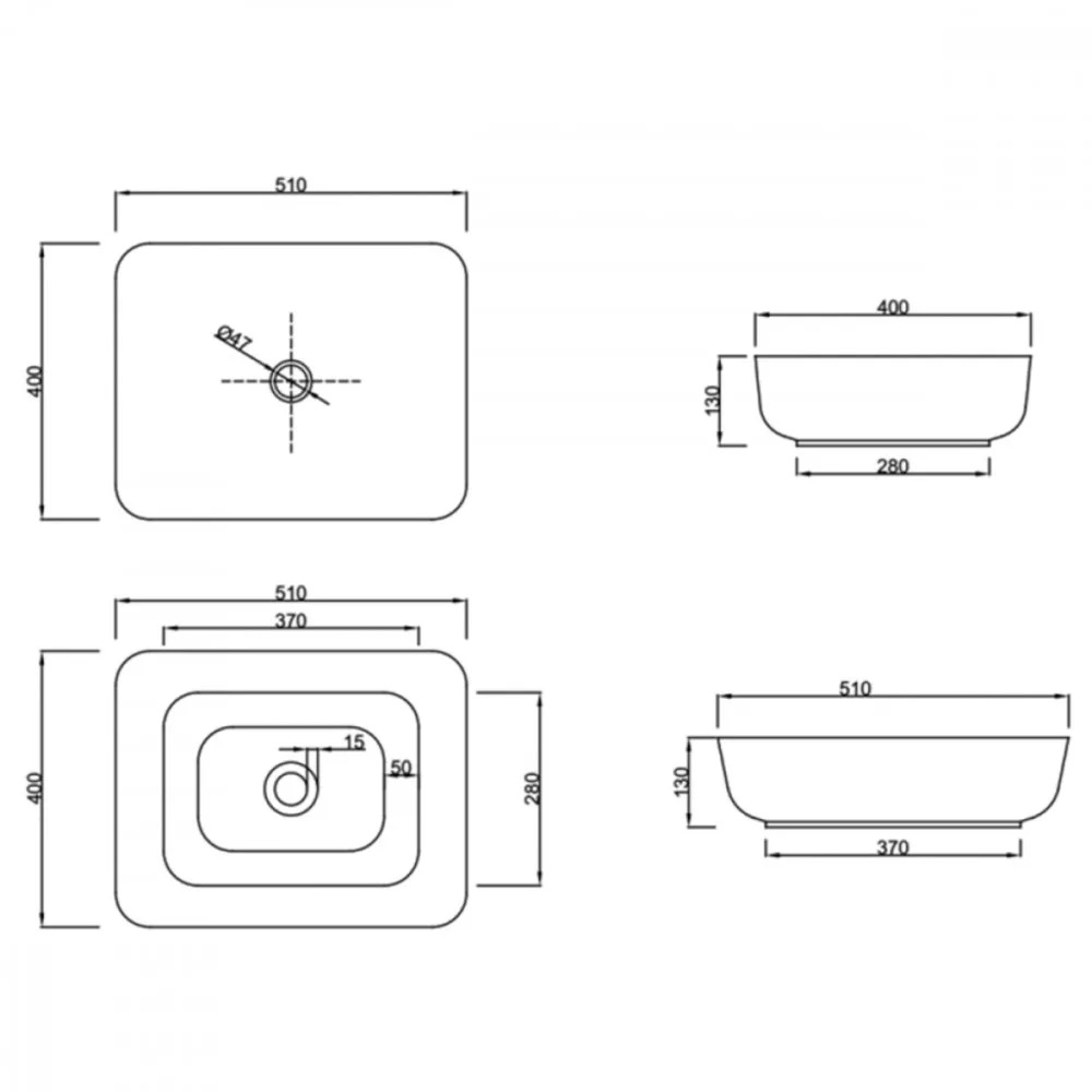 Invena Ate pultra tehető 51x40 cm szögletes mosdó, fehér színben