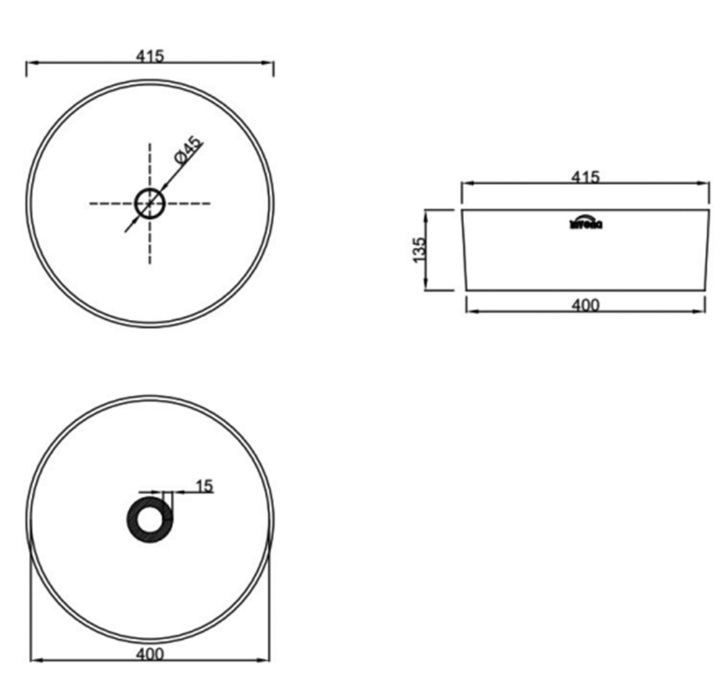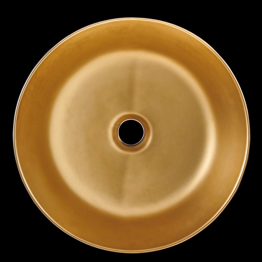 Invena Keto pultra tehető 42 cm kerek mosdó, fekete-arany színben