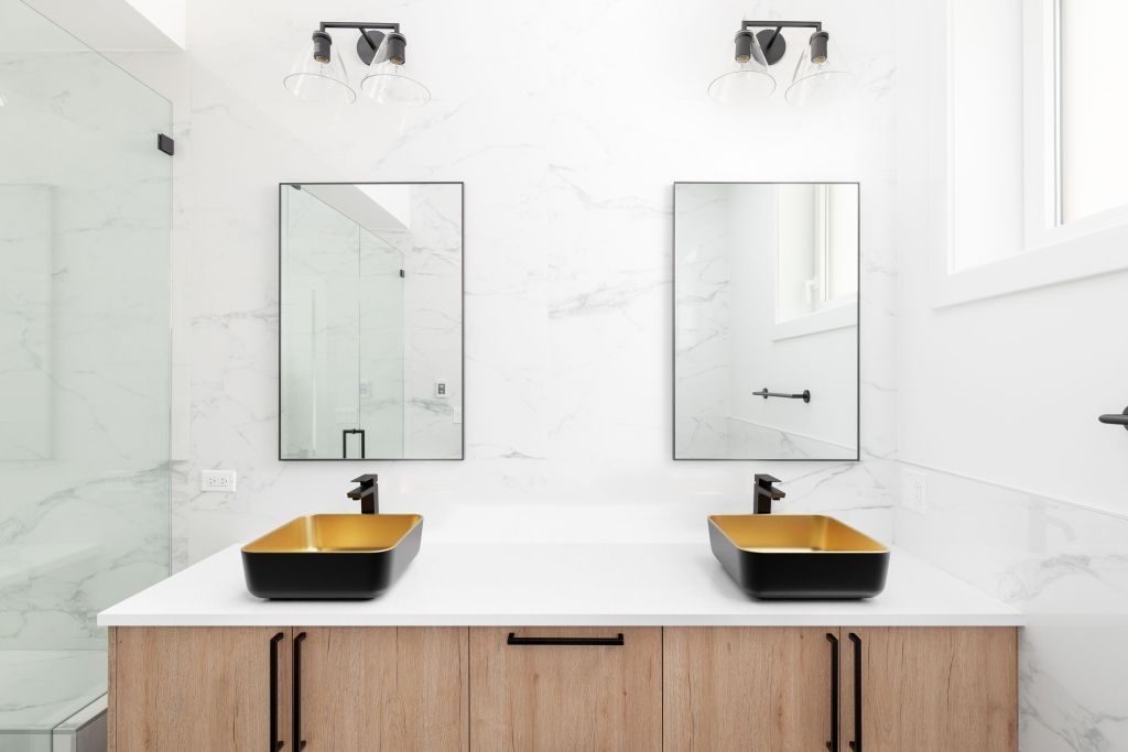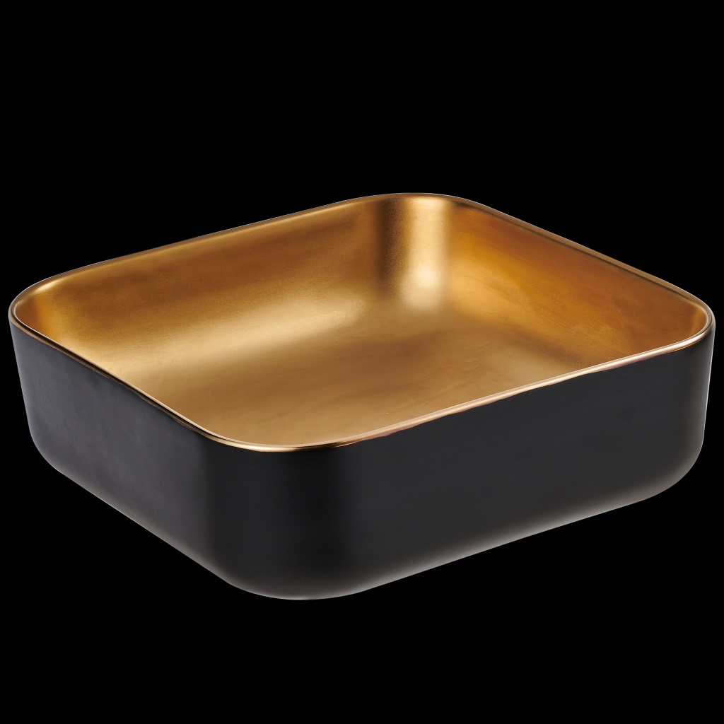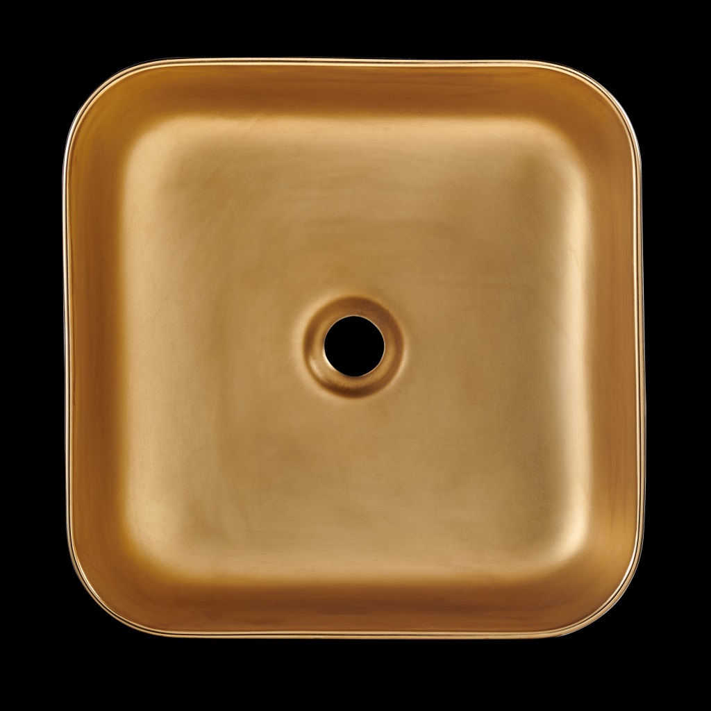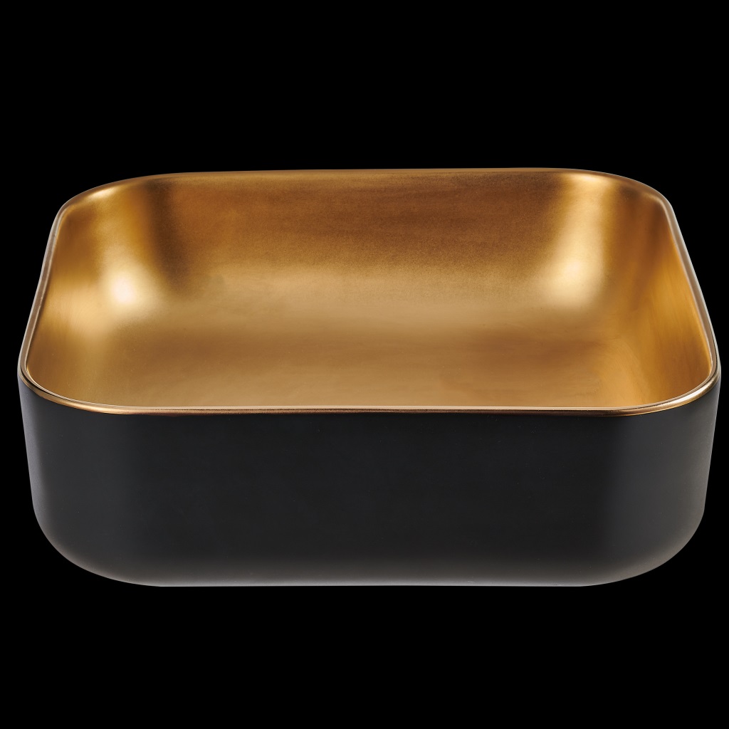 Invena Malaga pultra tehető 39x39 cm szögletes mosdó, fekete-szálcsiszolt arany színben