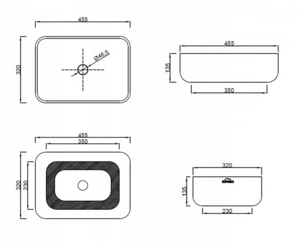Invena Westa pultra tehető 45 cm szögletes mosdó