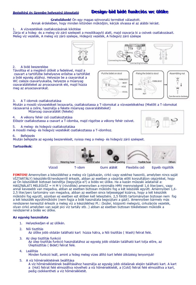 Bármilyen típusú WC csészére felszerelhető, azonban méreteit célszerű egyeztetni.