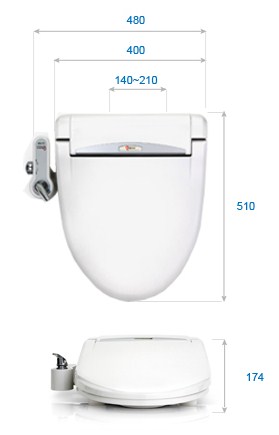 A bidé funkciós WC ülőke zsanérkialakítása lehetővé teszi ugyan az előre hátra irányban történő mozgatást a csészén, de kérjük, hasonlítsa össze az Ön meglévő vagy vásárlásra kerülő WC csészéje méreteit a képen látható termék méreteivel az optimális illeszkedés és esztétika elérése érdekében (nem megfelelő illeszkedés a készülék károsodásához vezethet,melyre a jótállás nem terjed ki!)