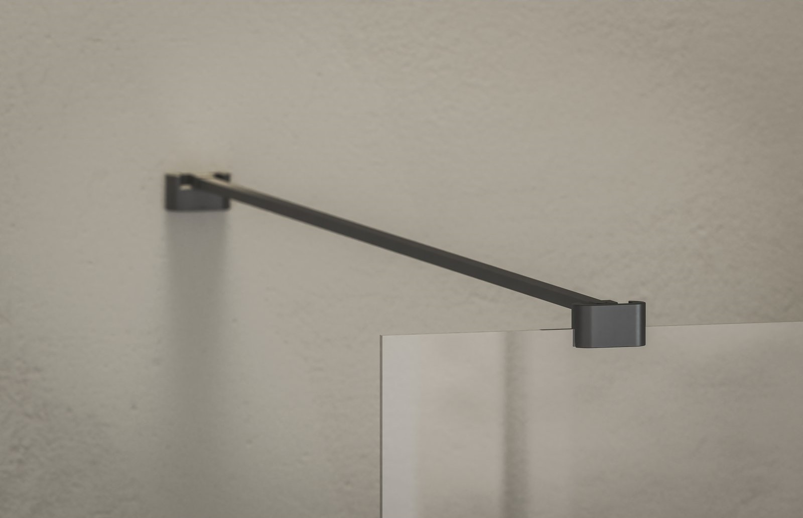 A Walk-In Air Wall zuhany 6 mm vastag edzett biztonsági üvegből és fém alkatrészekből készül. A termék stabilitását egy 120 cm hosszúságú merevítő biztosítja, amely a bejárat szükséges szélessége szerint tetszőlegesen rövidíthető.